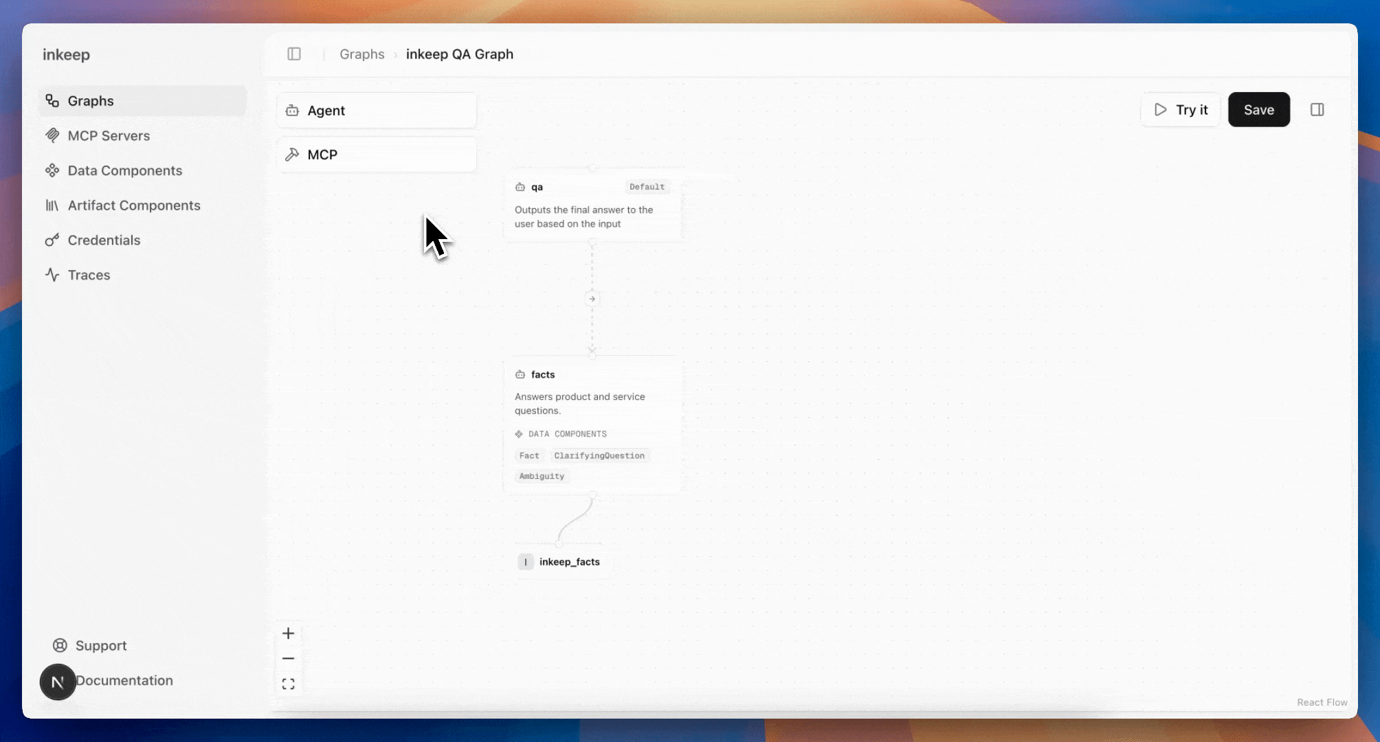 With Inkeep, you can create and manage Agents with a No-Code Visual Builder or a TypeScript Developer SDK. With the 2-way sync, both technical and non-technical teams can create and edit Agents collaboratively in either format.